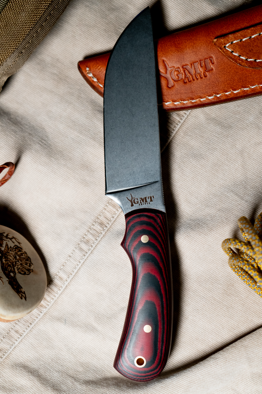 Built to Handle the Toughest Game. With a blade thickness of 3.7mm and a length of 10cm, the Highland Skinner is designed for precision cutting without sacrificing strength. Its larger handle — available in rugged micarta or beautifully grained granadillo wood—provides a solid, comfortable grip that allows for greater control and power when processing larger animals.